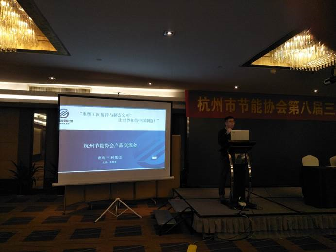 在会员单位节能工作经验交流环节,青岛三利中德美水设备有限公司和杭州哲达科技股份有限公司作了精彩的演讲,青岛三利企业军事化管理模式值得大家探索和深思,一家企业从小到大、走向国际,其创业的艰辛和不懈的追求,值得我们全体会员去认真思考的。杭州哲达充分利用高校人才优势,大胆探索,成为国内领先的智慧能源专家,获得国家科学技术进步奖,为节能行业起到了引领、表率作用。他们的展示,必将带动更多的会员单位去充分利用节能这个良好的沟通交流平台,展示各自的新产品、新技术、新服务,而协会也将在全体会员单位的关心支持下,去开创绿色的春天。
